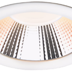 A recessed down-light adopting aluminium die-casting housing with high lumen efficiency and anti-glare properties.